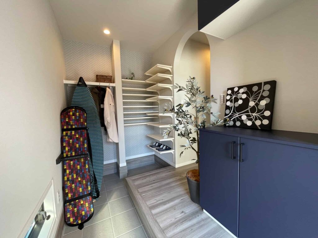 家族の生活リズムや家事動線を大切にした「回遊導線のある住まい」。ぐるりと一周できる動線を設けることで、毎日の暮らしがスムーズに。家族それぞれが自由に行き来でき、自然と会話やふれあいが生まれるよう設計しました。回遊導線のある間取りは、“動きやすさ”と“つながり”を両立した家。時間にも気持ちにもゆとりが生まれ、快適な暮らしを叶えます。