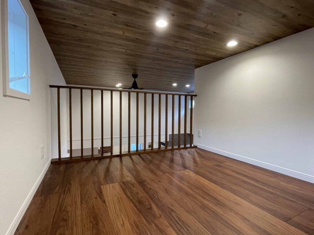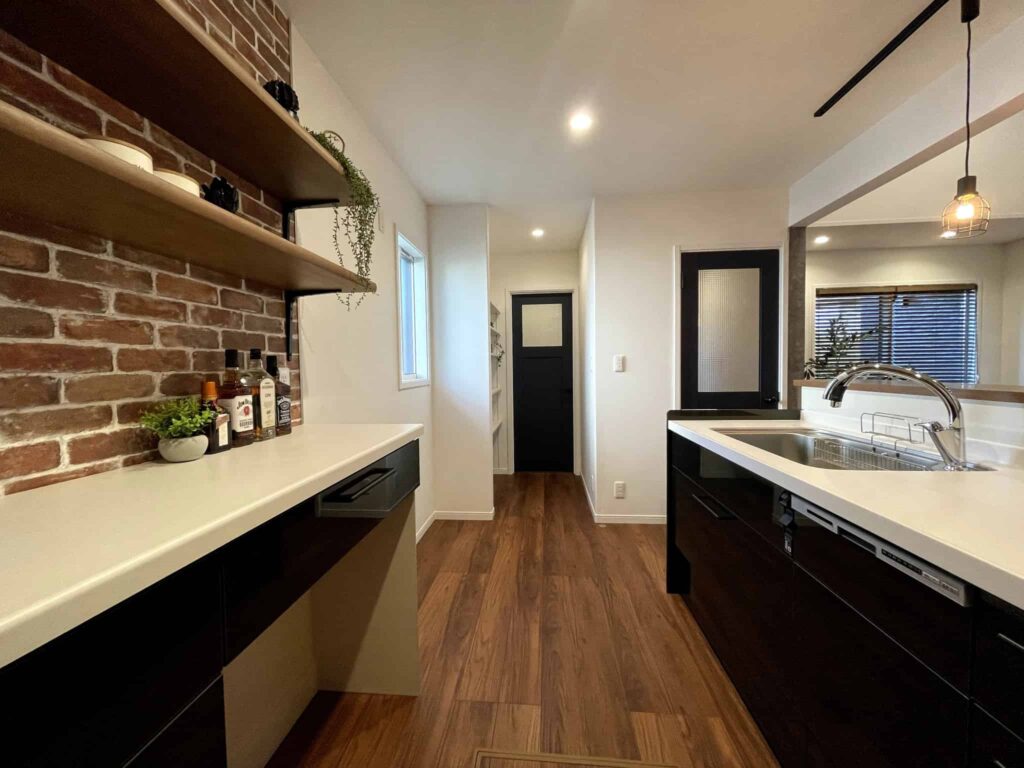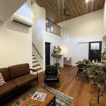居住スペースはシンプルで開放的にまとめ、バイクと共に過ごす時間を引き立てる空間となっています。
